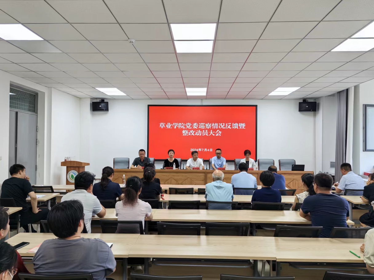 根据校党委统一部署,星空彩票体彩版党委第三巡察组于2024年5月11日至6月3日,对草业学院党委开展了常规巡察。7月4日下午,草业学院党委召开了巡察情况反馈暨整改动员大会。校党委第三巡察组向草业学院党委进行了巡察情况反馈。会议由草业学院党委书记王露巍同志主持。