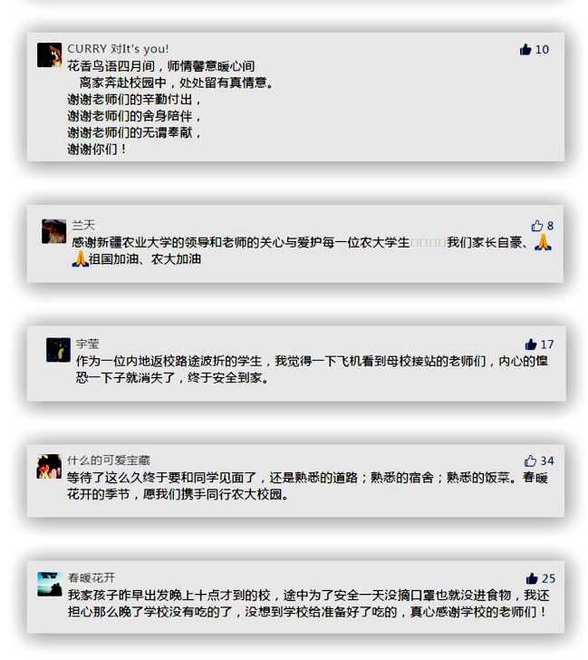 守护学生安全,让学生家长放心,是我校全体干部职工为学生返校复课做好全方位准备的初心。疫情终将远去,学校教学、科研、研究生复试、毕业答辩、就业……各项工作有序推进,农大人正以昂扬自信的姿态,向着美好的明天奋斗前行!