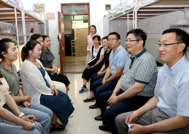 “工作找在哪里了?”“什么时候的车票?”“还有没有什么困难?”……谢树青一行来到20号公寓楼硕士毕业生宿舍,详细询问了毕业生的生源地和毕业去向、生活和就业中遇到的困难,征求大家对学校教学、管理、服务方面的意见和建议,希望大家有机会多回母校,多支持母校发展。
