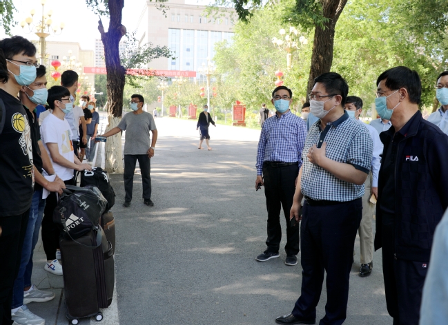 倾情六月,学子远行,师生惜别,情满校园。在2020届毕业生离校之际,6月11日下午,星空彩票体彩版党委书记谢树青、校长蒋平安一行深入学生公寓,亲切看望并送别毕业生,为即将踏上人生新征程的毕业学子们送去问候与祝福。
