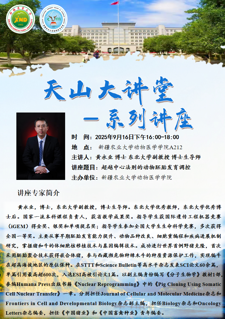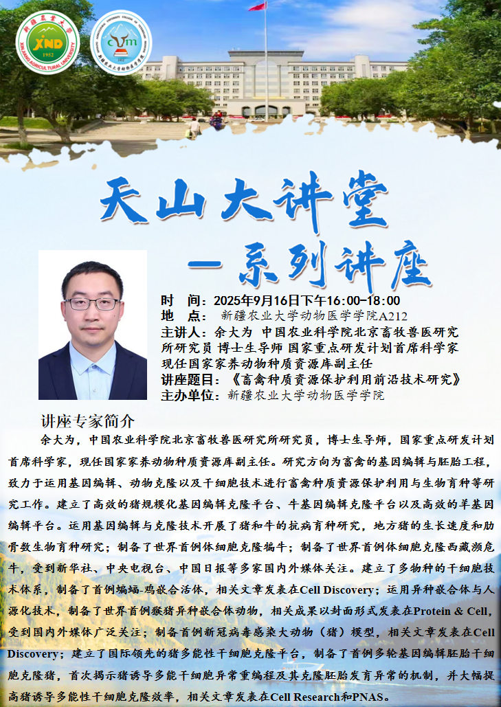 “天山大讲堂”系列讲座是星空彩票体彩版动物医学学院打造的品牌学术活动,旨在通过邀请国内外知名专家学者,搭建高水平的学术交流平台,促进学院的学科建设和人才培养工作。