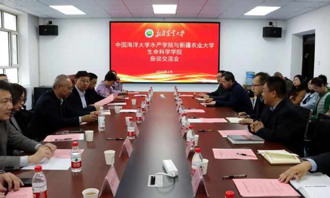 会上,王希东代表学院对中国海洋大学各位领导到来表示热烈欢迎。生命科学学院水产养殖教研室主任张俊杰就教研室基本情况、师资队伍、研究生培养、科研项目、水产养殖专业及合作需求等方面进行了介绍;中国海洋大学水产学院副院长刘阳就水产学院概况、主要办学成效、科研团队建设和发展目标等方面进行了介绍;邓康处介绍了新疆渔业产业发展迫切需要解决的问题,希望双方能够结合新疆实际,加强合作,找准切入点,共同为新疆的渔业产业发展贡献力量。