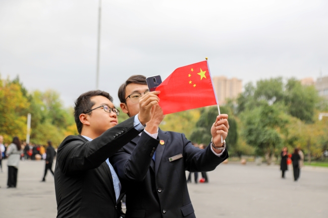 科学技术学院学生麦迪乃·吐尔洪激动地说:“每当我仰望五星红旗,每一次唱起国歌,爱国之情就在我心中激荡,很幸运能和祖国母亲一起过生日,祝愿祖国更加繁荣昌盛。”
