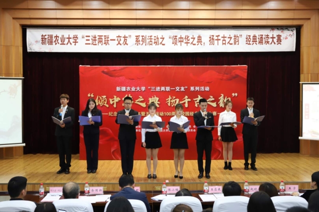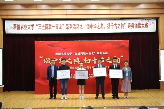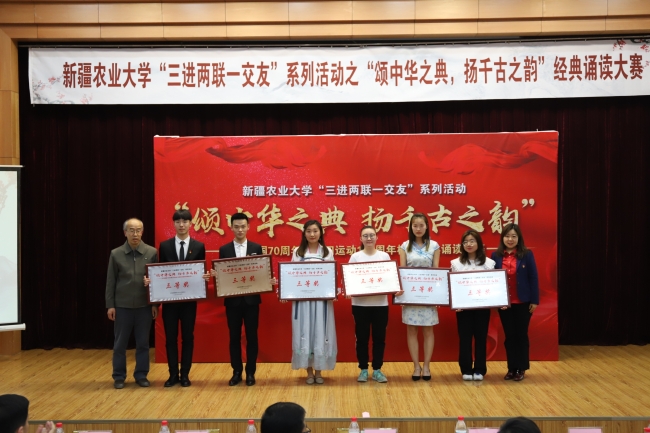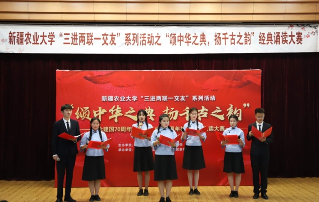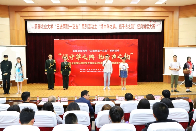 为纪念中华人民共和国成立70周年、五四运动100周年,响应习总书记传承发展中华优秀传统文化号召,积极为青年学子人生出彩搭建舞台,5月12日晚,由校团委主办、经济与贸易学院承办的星空彩票体彩版“三进两联一交友”系列活动之“颂中华之典,扬千古之韵”经典诵读大赛在学术报告厅举行。校党委常委、副校长张小楠参加活动并致辞。