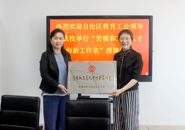 6月21日上午,自治区教育工会主席索萍、副主席夏汗哈孜·木沙依、斯拉吉丁·阿不拉一行来我校,为我校“劳模和工匠人才创新工作室”授牌。