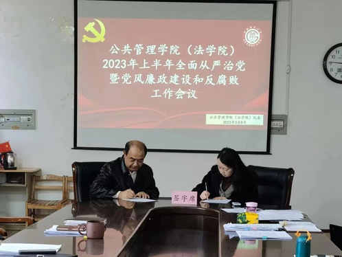 会议最后,学院党委书记阿布都热西提·阿布都卡地尔与各支部书记签订《2023年党风廉政建设目标责任书》,院长杨俊孝与各系主任签定《2023年党风廉政建设目标责任书》,各科级干部签订了《廉洁从政承诺书》。