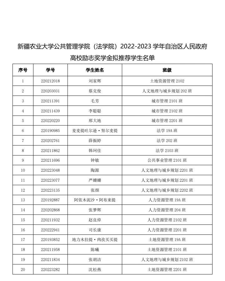 公共管理学院(法学院)2022-2023学年自治区人民政府高校励志奖学金评选结果公示