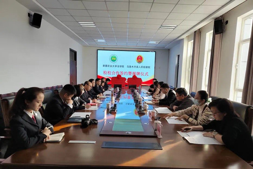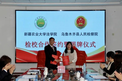 为进一步推进法学专业司法理论研究与人才培养,推进检校双方合作共赢,11月29日,公共管理学院(法学院)教工第四党支部与乌鲁木齐县检察院举行“检校共建合作”签约揭牌仪式暨主题党日活动。公共管理学院(法学院)副院长杨晓萍、乌鲁木齐县检察院党组书记李太良、教工第四党支部全体教师以及县检察院工作人员参加了本次活动。