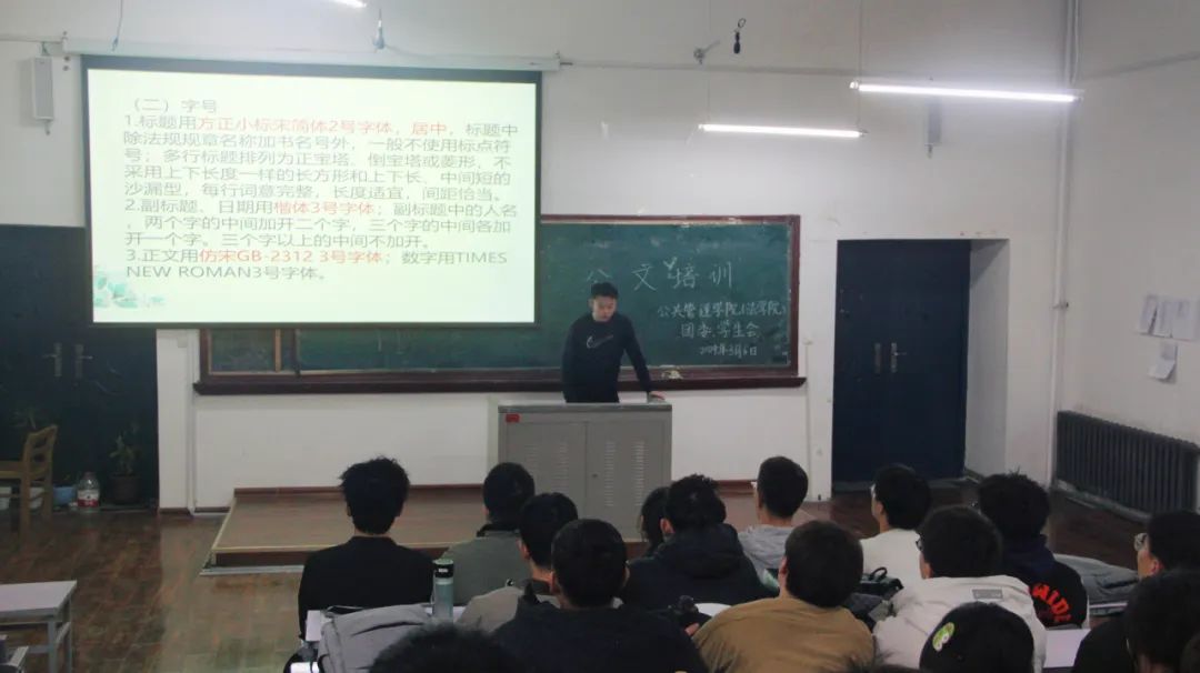 为了让学生深入了解和掌握公文写作要领,提高学生的公文写作水平,加强公文写作能力和规范性,更好开展学院的各项工作。公共管理学院(法学院)第十三届团委、学生会于2024年3月6日在三号楼10115教室举办团学干部公文培训活动。