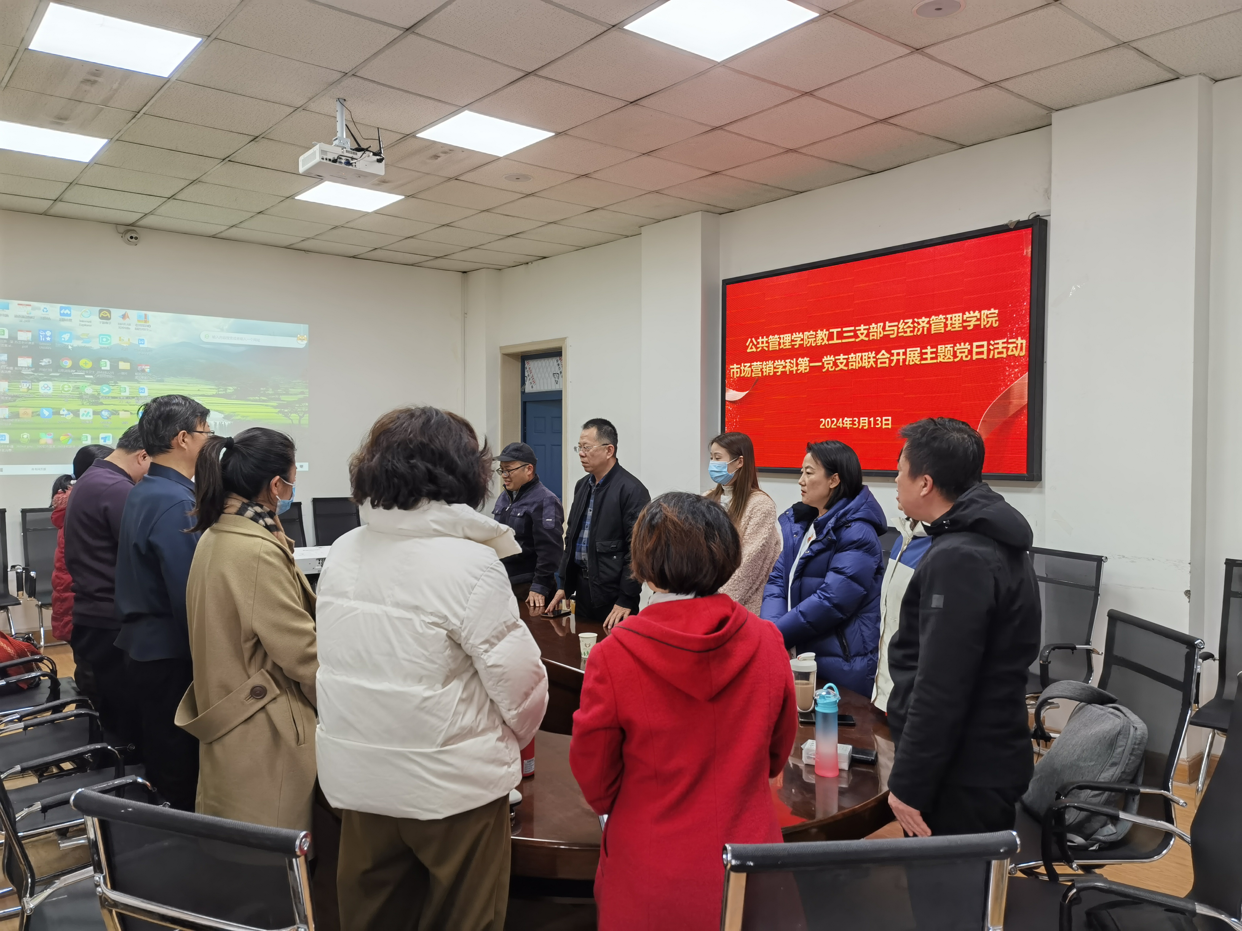 2024313下午,星空彩票体彩版公共管理学院教工第三支部与经济管理学院市场营销学科教工第一党支部联合举办了一场“线上线下混合式教学经验分享”主题党日活动活动地点在经济管理学院。此次活动旨在促进教师在混合式教学方法和技术应用上的交流与提升,进而提升教育教学质量。