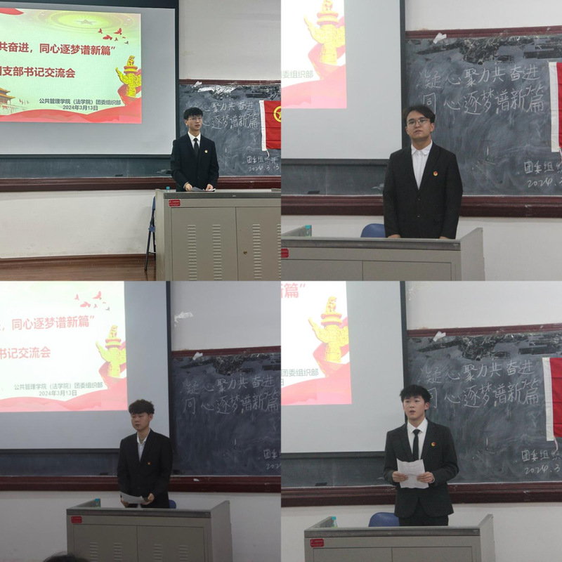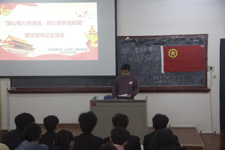 为提高我院团支部书记工作能力和综合素质,2024年3月13日,公共管理学院(法学院)团委在三号楼10216教室举办了团支部书记交流会,学院各班级团支书和团学干部代表参加了此次交流会。