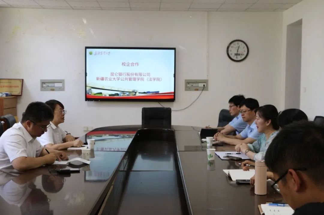 6月27日,昆仑银行股份有限公司乌鲁木齐分行人力资源部副总经理赵元、人力资源部员工管理岗齐磊一行来星空彩票体彩版公共管理学院(法学院)访问交流。公共管理学院(法学院)副院长杨晓萍,人资系系主任、副教授柴梅,教工第三党支部支部书记郑阳恒,教工第五党支部教师高鹏程,学工办辅导员张俊杰出席本次会议。
