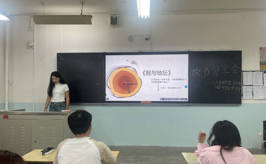 接下来由公管2202的巴合迪娜·霍加衣同学为我们分享《我与地坛》这本书。她从作者介绍、推荐理由、经典语录和读书感悟这四个部分为我们介绍这本书。巴合迪娜·霍加衣同学表达了她对《我与地坛》这本书的深深感悟:或许所谓生与死对于我们来说太过遥远,但阅读本就是让我们从别人笔下的文字汲取自己向上成长的力量、学习他人为人处世的态度方法、充实精神世界、提高思维高度、拓宽人生广度的过程,让我学会在逆境中奋起,用不屈的意志为自己开辟向前的道路,用一往无前的勇气和命运叫板,探求活着的意义,实现生命的价值。正如史铁生老师所说:"把疾病交给医生,把命运交给上帝,把快乐和勇气留给自己。"他并未离去,他在每位读者心中获得永恒,在贫瘠的土地上开出了最绚烂出尘的花。