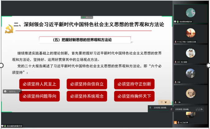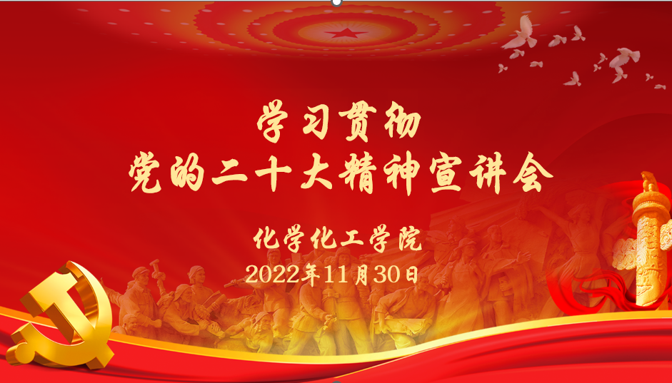 为深入学习宣传贯彻党的二十大精神,引导全院党员干部和师生员工把思想和行动统一到党的二十大精神上来,切实推动党的二十大各项决策部署落到实处、取得实效。11月30日下午,化学化工学院组织召开学习贯彻党的二十大精神线上宣讲会,学院全体教职工参加会议,学院党委副书记地力夏提·阿尔肯主持会议。