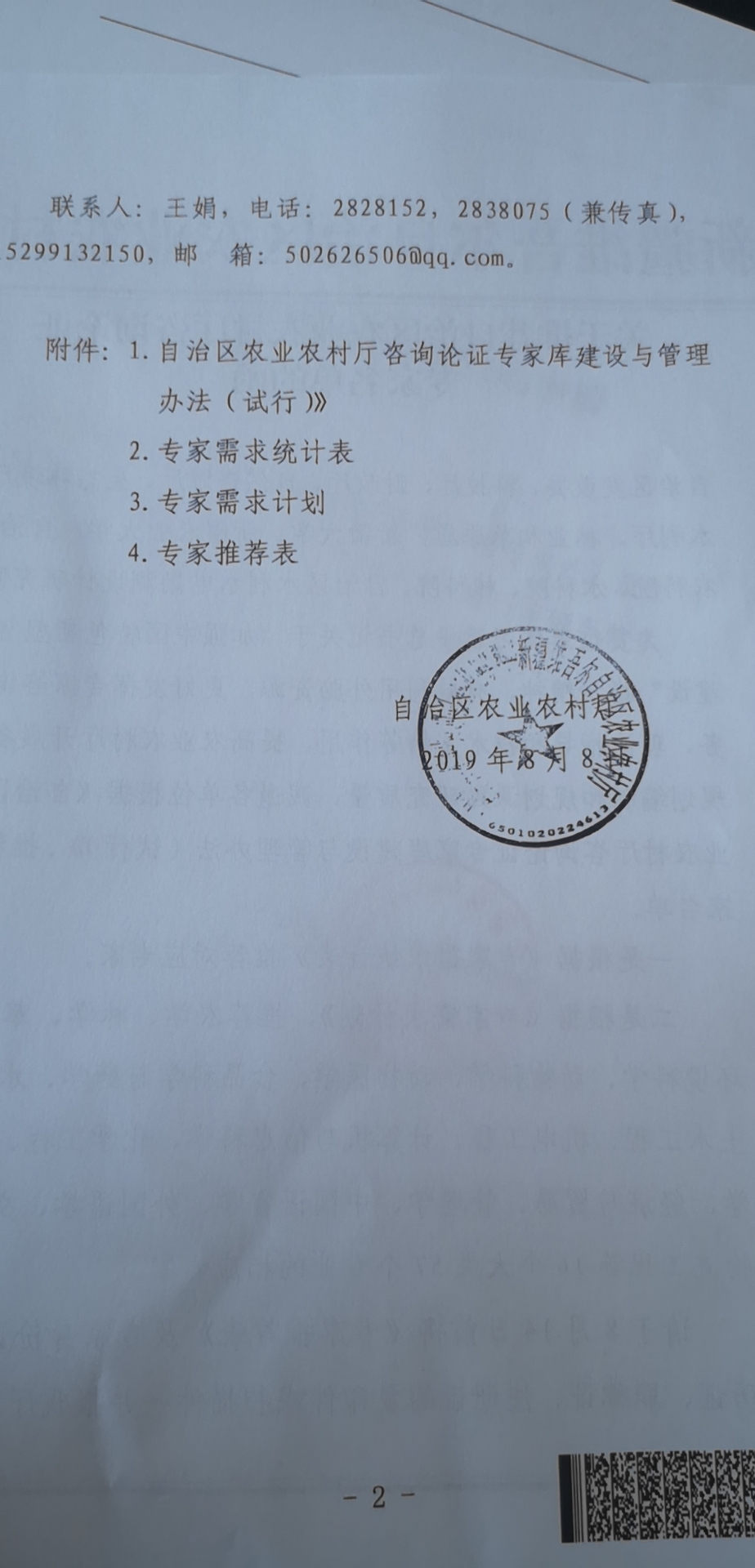 现将《关于推荐自治区农业农村厅咨询论证专家名单的函》转发给你们,请按照推荐要求,认真组织学院教师进行申报,请于2019年8月13日20:00前将专家推荐材料的电子版(附件4专家推荐表,需要盖章后扫描、专家身份证、学历证、职称证扫描件)统一报送至我处邮箱,kyc3890@126.com。