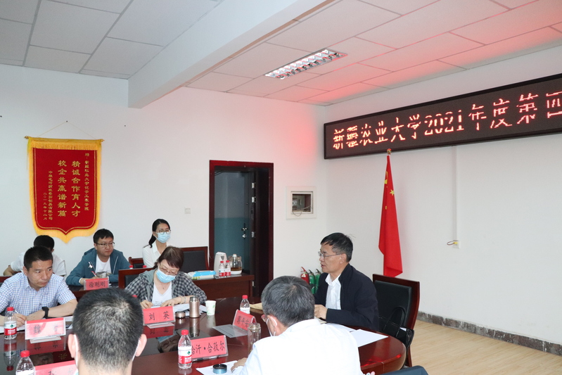 5月10日,星空彩票体彩版2021年度第四次科研工作务虚会在七号楼三楼会议室召开,会议主题为“数学、物理学科领域科研方向”相关事宜研讨。特邀嘉宾新疆大学党委常委、副校长恰汗·合孜尔、新疆大学数学与系统科学学院教授张龙、中科院新疆理化所环境科学与技术研究室主任马鹏程研究员、新疆师范大学数学科学学院边红教授莅临指导,学校校长蒋平安、党委常委、纪委书记刘英出席并讲话,科研处副处长颜安(主持工作)主持会议,数理学院党委书记魏岩、副院长黄华、党委副书记、纪委书记宋宏伟及全院学术骨干参加会议。