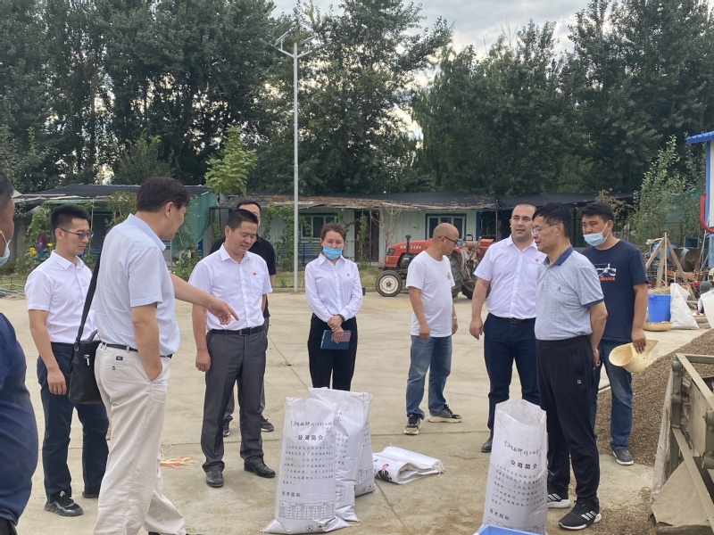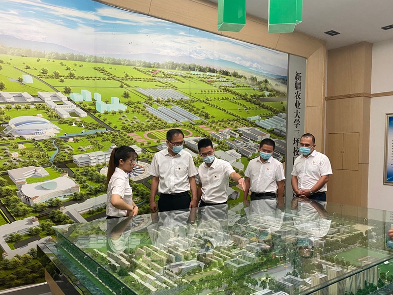 蒋平安校长代表学校对自治区林业和草原局科技处处长戴君峰、副处长程志峰一行来校调研指导表示欢迎,与科学技术处全体干部、自治区林业和草原局科技处一行到陆港校区林学与风景园林学院教学实践基地、草业学院新牧4号紫花苜蓿原原种扩繁建设基地进行实地参观考察。