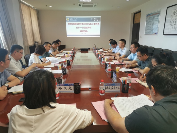 自治区科学技术厅成果转化与科技奖励处处长吐尔逊江·哈力克一行来校调研