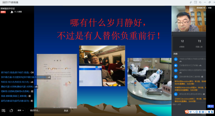 教工支部在加强疫情防控期间政治学习的基础上,重点探讨以线上教学为载体,战“疫”课程思政的思路、方法和举措,并推进在线上教学中的具体落实。例如田嘉老师在《园艺植物育种学》网络教学中号召同学们要以园艺171和园艺183同学在疫情期间参加战“疫”志愿者行动、身处“灾区”湖北同学的坚守、听党话的42千名的医务“逆行者”为榜样。姜秀梅老师在《蔬菜栽培学》网络教学中号召同学们要积极参加春耕备耕生产,在脱贫攻坚的事业中贡献青春力量,并从新疆驰援湖北的物资入手进入教学环节。耿文娟老师在《园艺专业英语》开课前利用多媒体视频进入战“疫”主题,歌颂在这场抗击疫情战役中最美的逆行者、最勇敢的白衣战士。林辰壹老师在《食用菌栽培学》课程中强调,要从自身做起,拒绝捕杀和掠食野生动物。李文胜老师在《果树栽培学总论》总结到“哪有什么岁月静好,只不过有人替你负重前行”,以“方舱医院”读书男孩为例勉励同学们要不负韶华、刻苦学习。高杰、周龙、董连新、刘立强、玉苏甫、王惠林、闫会转、依巴代提、温玥、张翠芳、曼苏尔等园艺系教师纷纷结合承担课程开展课程思政,进行课堂战‘疫’活动。