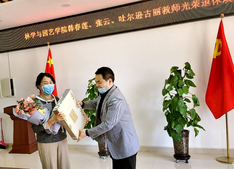 423日下午,林学与园艺学院利用周三下午教职工集中学习的时间,2020年一季度光荣退休教师举办欢送会。学院领导和老师怀着无限崇敬与依依不舍的心情欢送退休的韩春莲、张云和吐尔逊古丽三位老师