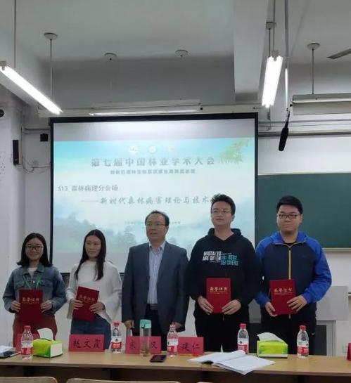 我院副院长王振锡带领马荣、巴音达拉、高桂珍三位研究生导师以及9名硕士研究生参加了此次盛会。参加森林保护分会场的硕士研究生赵颖、刘金宇、叶双华、王强、刘思琪、朱建梅、李岚洁等分别做了学术报告。其中,叶双华和李岚洁同学做的“西天山野核桃上新病害病原菌种类的研究”、“光周期和温度对葡萄蛀果蛾滞育诱导的影响”的学术报告各荣获第七届中国林业学术大会三等奖。这不仅彰显了我院林学学科的研究成果,更是对我院学科研究水平的肯定。通过这次学术交流,拓宽了师生们的学术视野,而且为我们学科研究方向提供了新思路,进一步激发了师生们科学研究的创新创造潜能。