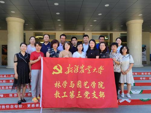 近日,林学与园艺学院教工第三党支部(风景园林系、植物生理部)一行14人赴新疆林业学校就推进落实“821”工作机制项目对接,帮扶结对林校园林专业课程体系建设、课标制定等工作进行座谈交流,并联合开展了建党99周年主题党日活动。