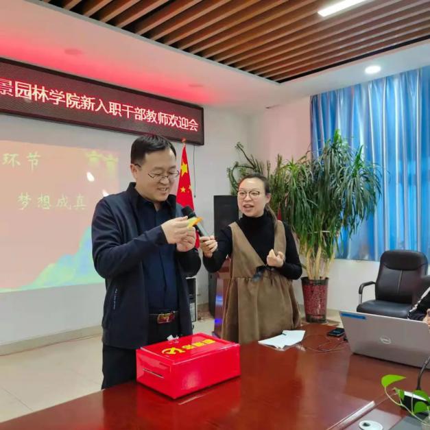 两位新进教师张亚菲杨丽也分别上台向大家做了自我介绍,她们许下诺言,要不忘教育初心,牢记教育使命,在林园学院这片沃土上施展自己的才华,成为德高业精的好老师。欢迎仪式上,学院老教师为新教师佩戴校徽,送上鲜花和纪念品,祝贺他们正式成为农大教工队伍中的一员。