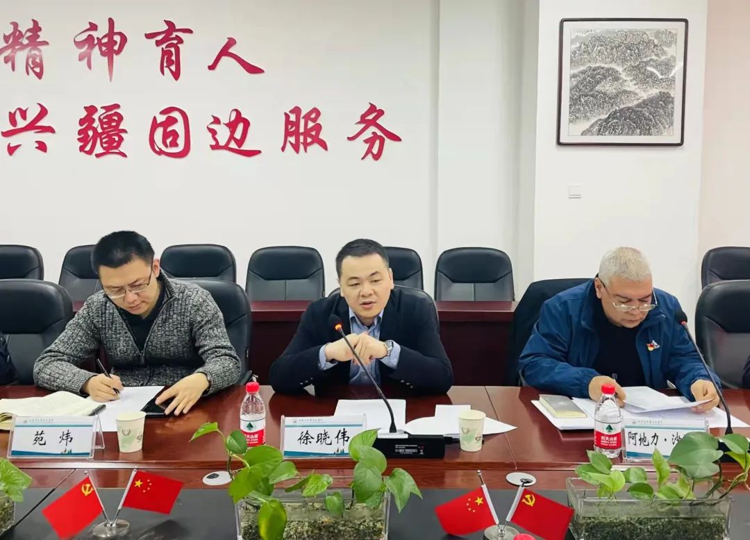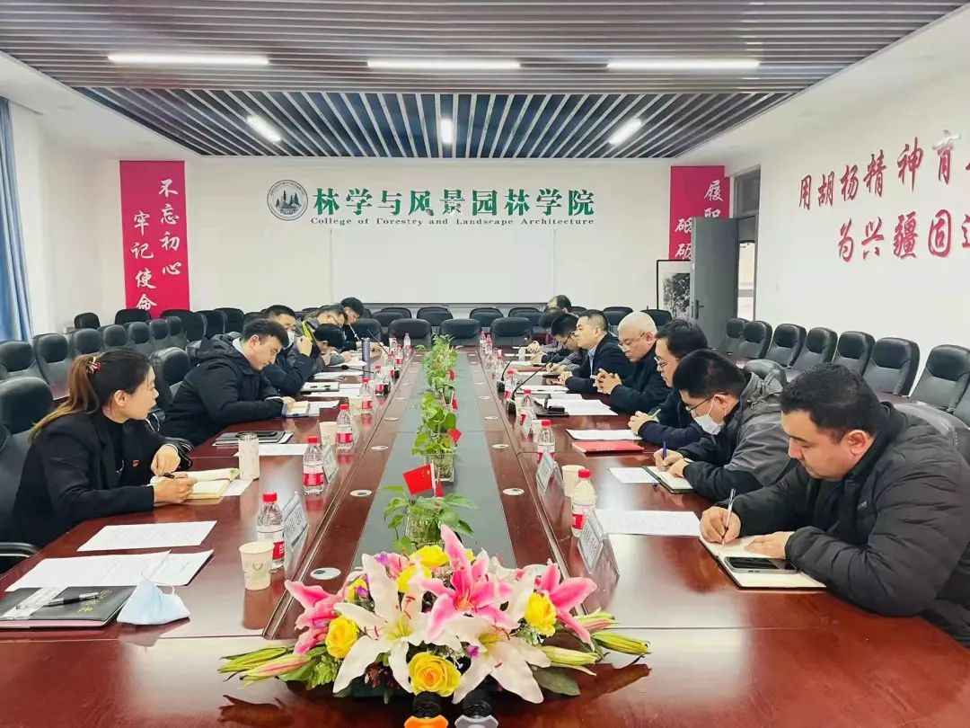 3月23日上午,校党委常委、组织部部长许新军带领校团委副书记加马力丁·卡麻了和学生处就业办阿尔法特·阿布力孜老师来我院开展党建调研。林学与风景园林学院党政领导班子、党委委员、各党支部书记和部分支委参加本次调研会。