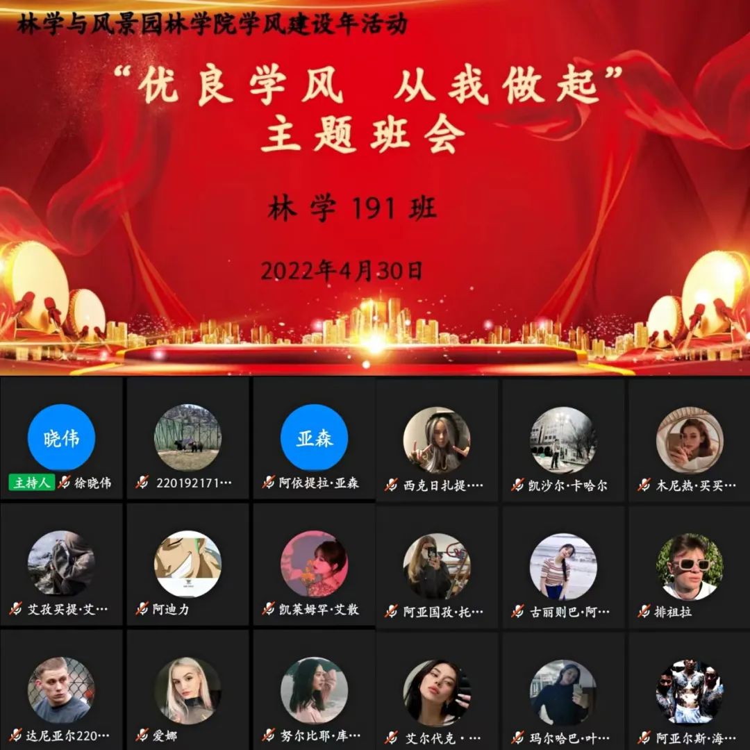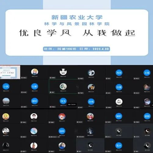 为进一步激发广大学生的学习热情,明确学习目标,促进各班形成“比、学、赶、超”的优良学风,林学与风景园林学院于4月30日至5月1日组织各班召开“优良学风,从我做起”主题班会。全院师生积极响应,纷纷通过线上和线下形式召开班会,营造浓厚的学习氛围。