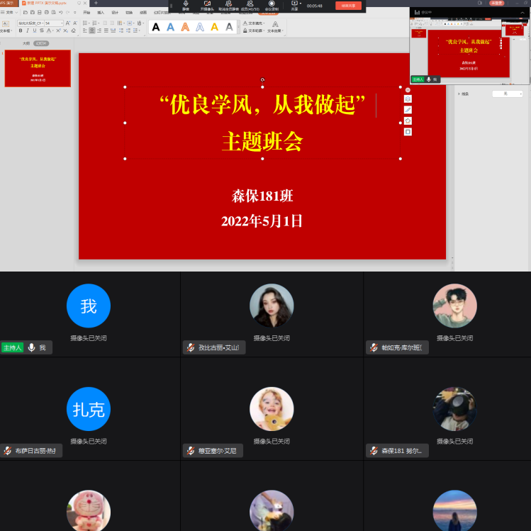 此外,主题班会还对近期疫情防控、核酸检测、防范电信诈骗、网络舆情管控、毕业生求职就业等工作进行了安排部署。