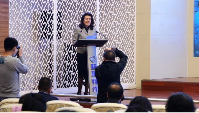 活动伊始主持人播放宣传片,大家一起观看防灾减灾日科普宣传视频。自治区科协党组成员、副主席古丽娜尔·吾布力进行发言,她强调了减灾意识的重要性,指出我们应不断提高减灾意识,通过举例告诉大家遇到常见自然灾害时,我们应该如何保护自己。