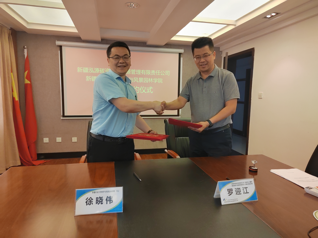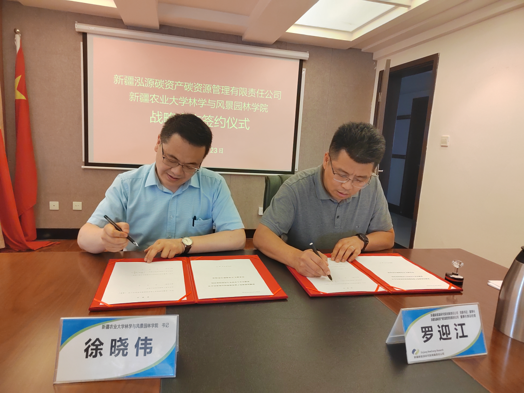 523日,林学与风景园林学院与新疆新能源集团子公司新疆泓源碳资产碳资源管理有限公司签订林业碳汇项目开发战略协议。
