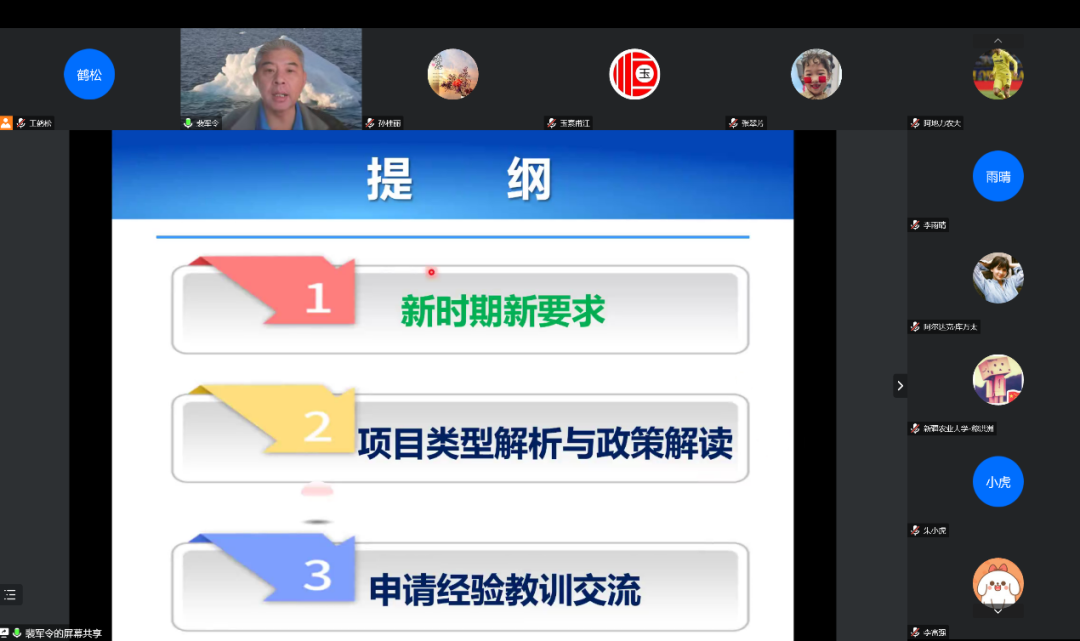 为全面促进国家自然科学基金项目的申报工作,进一步提高教师基金申报质量和水平,林学与风景园林学院于2022年12月21日以线上的形式举办了“八一讲堂”学术交流会。学院邀请到中国地质科学院裴军令研究员做了关于“国家自然科学基金项目申请交流”的报告,会议由校科技处副处长玉素甫江主持,全校拟申报教师参加了会议。