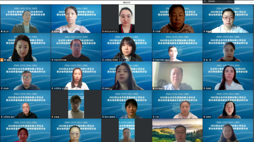这次会议共邀请到新疆城乡规划设计研究院有限公司、新疆景观规划设计研究院有限公司、乌鲁木齐市园林设计研究院有限公司、新疆西苑绿景园林工程设计有限公司、新疆合筑营造建筑规划设计院、济南市政设计集团新疆分院、新旅佳联设计研究院有限责任公司7个研究生联合培养基地。各基地负责人围绕近年来在基地建设、人才培养、项目合作等方面取得的成果和经验做法依次进行了交流汇报,并推荐了各单位完成的优秀工程设计项目作为我院风景园林硕士课程教学案例素材。