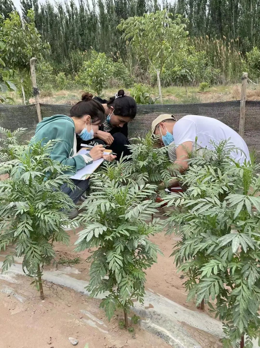 20224月起,在安晓芹副教授的指导下8名研究生及本科生兵分两路,其中王婧雯等同学每月定期前往和田地区于田县阿热勒乡万方村实施课题4“玫瑰产业提质增效技术集成与示范”化肥减施增施生物有机肥田间实验,进行数据采集。