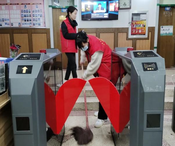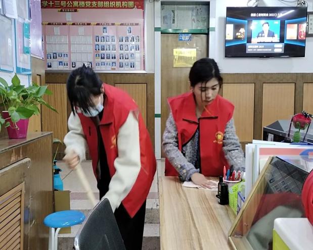 清洁宿舍楼大厅门窗、为绿植清洁浇水、打扫公共区域卫生、清理整理储物间……座谈交流结束后,同学们分为三个志愿者小分队,在各党小组组长的带领下,对3栋宿舍楼的大厅、走廊进行全面打扫。从展板到门窗再到绿植,大家齐心协力、互帮互助,体现了党员的服务意识、大局意识和奉献精神。在大家的辛勤努力下,宿舍楼大厅的面貌焕然一新,受到了宿管老师和周围同学的一致好评。