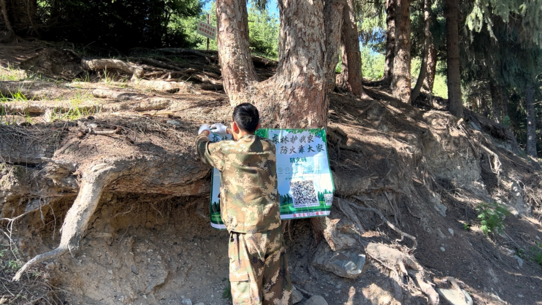 团队成员与当地管护站工作人员一起走进山林进行现地勘测,相互学习,共同进步,同时队员在进入林区的入口帮助当地管护站工作人员安置森林防火码,在易于发生火灾的季节从源头上严控野外火源。在空余时间,团队成员帮助叔叔阿姨赶羊,体验了别样的田园生活,与叔叔阿姨们建立了深厚的感情。