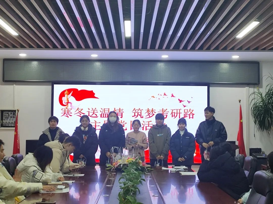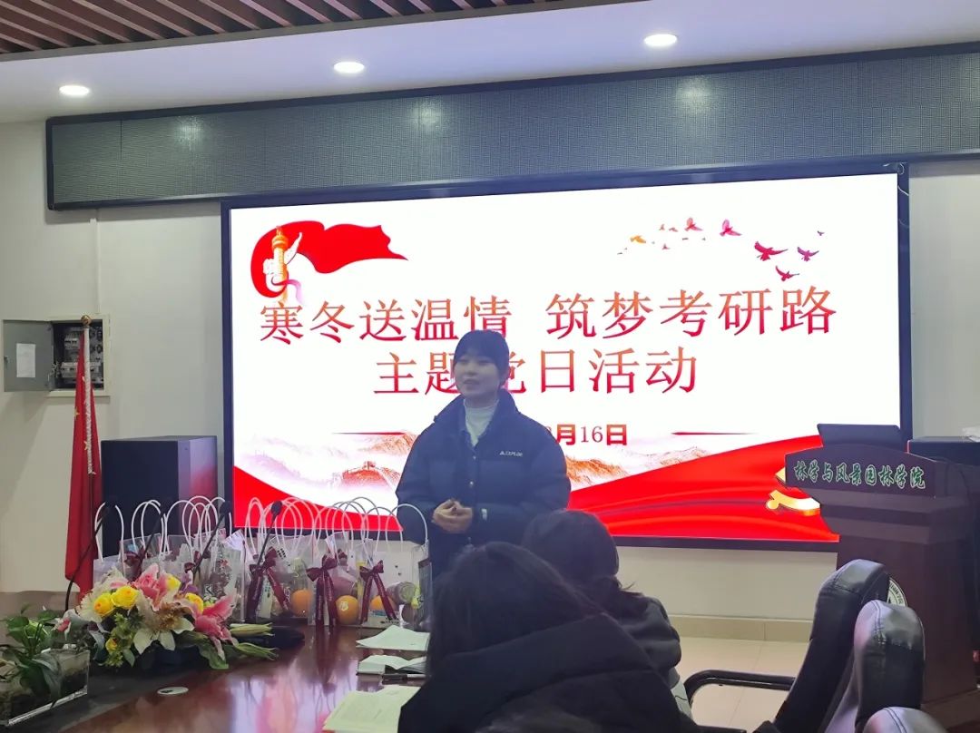 在2024年全国硕士研究生招生考试即将到来之际,为帮助党支部考研学子坚定信心、缓解压力,鼓舞考研士气,营造和谐温暖的学院氛围,传递温暖和力量,分享彼此的经验和心得,帮助大家更好地备战考研,2023年12月16日下午,林学与风景园林学院本科生第三党支部在院党委支持下组织开展“寒冬送温情 筑梦考研路”主题党日活动。