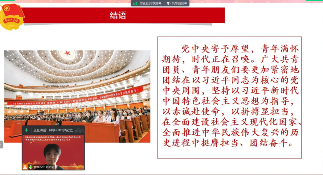 通过本次主题团日团课活动,同学们深刻认识到了青春在于奋斗,青年创造未来的理想信念,让我们更加紧密团结在以习近平同志为核心的党中央周围,全面深入学习贯彻习近平新时代中国特色社会主义思想,踔厉奋发、奋楫笃行,为全面建设社会主义现代化国家、以中国式现代化全面推进中华民族伟大复兴而团结奋斗!