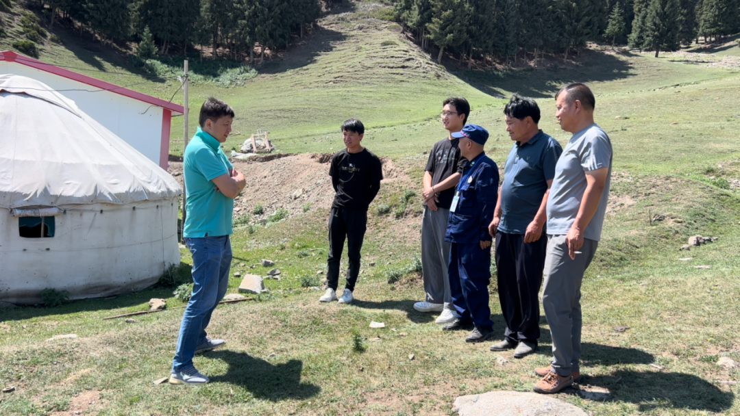 在叶尔江老师的带领下,团队有幸邀请到当地学生、旅客、农牧民共同参与绿色宣讲活动,团队成员重点宣传了全面促进资源节约、加大自然生态系统和环境保护力度以及加强生态文明建设等相关知识,让大家对绿水青山就是金山银山的理念理解的更为透彻,也明白过度放牧对破坏森林生态系统有危害性。