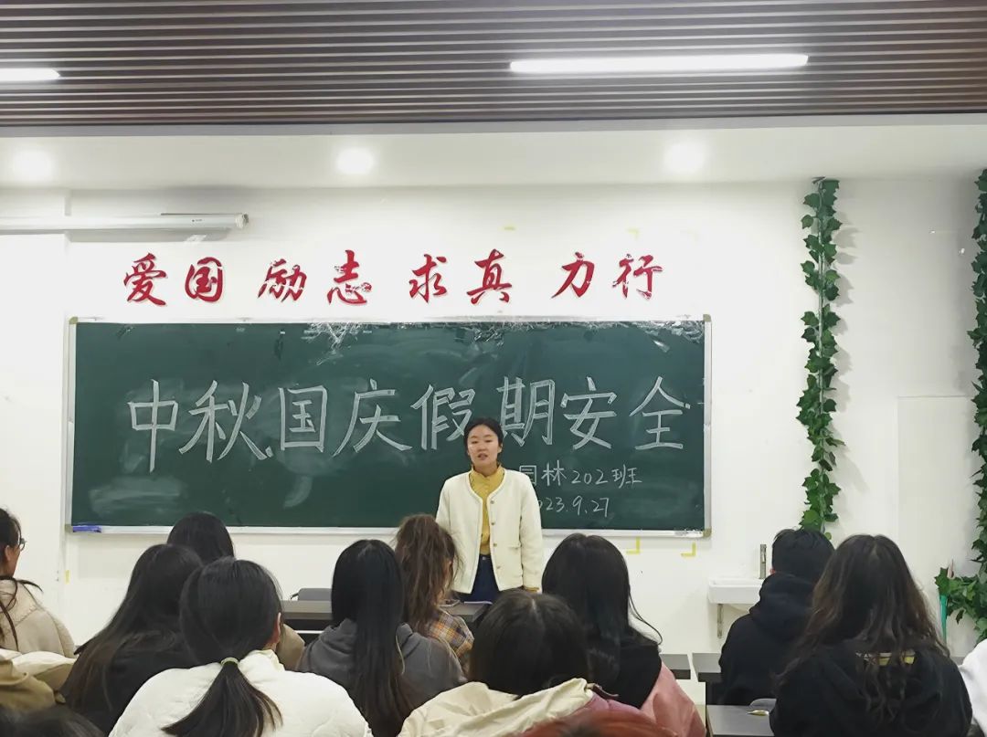 为进一步加强校园安全管理工作,提高学生安全意识,强化假期安全教育,让我院师生安全、稳定地度过双节假期。林学与风景园林学院召开节前“双节同庆、安全同行”安全教育主题班会。