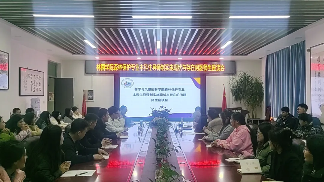 2024年3月8日17:40,林学与风景园林学院森林保护专业本科生导师制工作交流座谈会在学院111会议室举行。座谈会立足于学院全方位育人的指导理念,旨在打通教学与学生工作领域,通过听取教师代表、学生代表对学院本科生导师制的体会和建议,探讨在今后的工作中如何进一步完善制度。林园学院院长阿地力·沙塔尔、副院长马荣、教学办杨丽老师、森保全体教师和森保19、20、21级本科生代表参加座谈会。会议由森保专业教师迪丽努尔主持。