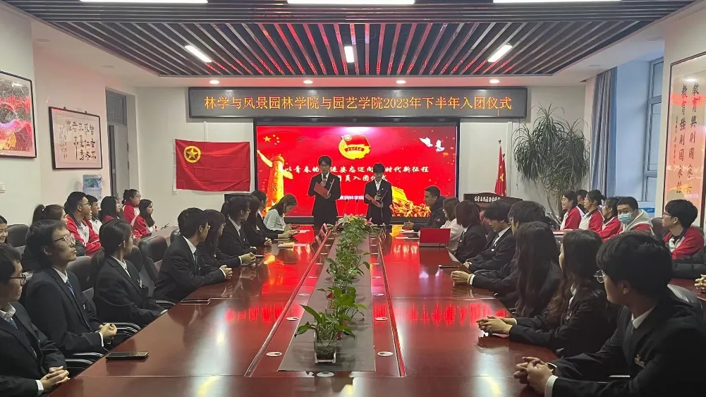 为深入学习贯彻党的二十大精神和共青团十九大精神,进一步加强学校共青团队伍建设,深入贯彻习近平新时代中国特色社会主义思想,增强青年的社会责任感与使命感,诠释青年精神、展示青年风采、书写青春华章,切实提升团员发展质量,强化团员意识,增强团组织的吸引力、凝聚力和战斗力,2023年12月26日,星空彩票体彩版林学与风景园林学院与园艺学院于林学与风景园林学院111会议室召开了入团仪式,全体2023年度新发展的团员参加了此次活动。