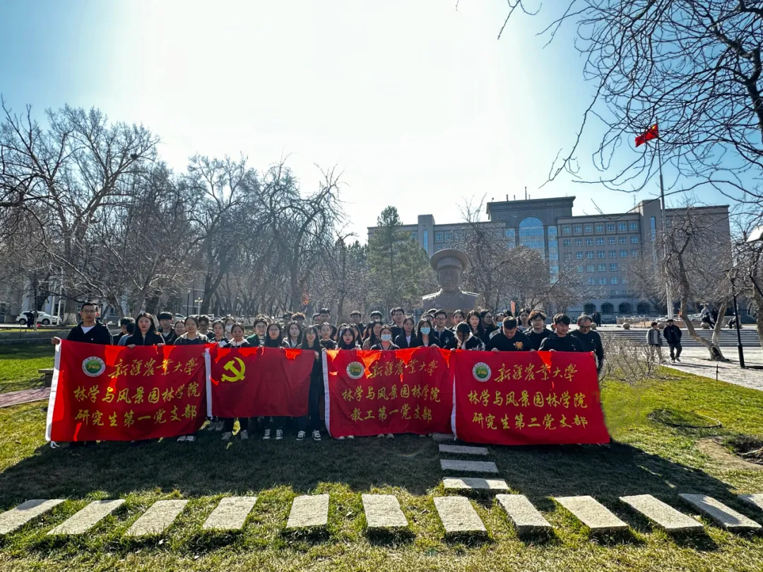 清明时节,春风拂面,怀着崇敬之情,林学与风景园林学院教工第一党支部、研究生第一党支部以及研究生第二党支部全体党员于2024年4月4日,共同聚集在王震将军像前,举行了一场庄严肃穆的“清明怀念先烈,传承红色精神”主题党日活动。共同缅怀先烈,传承红色基因,铭记历史,砥砺前行。