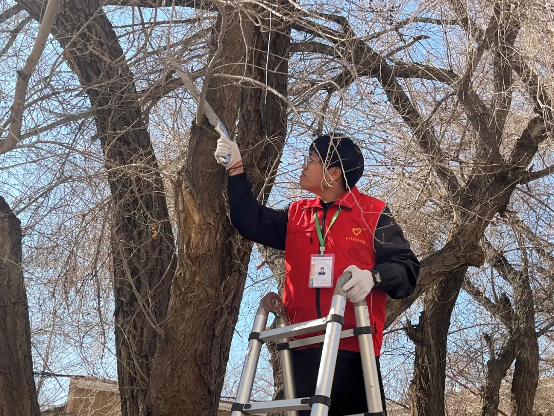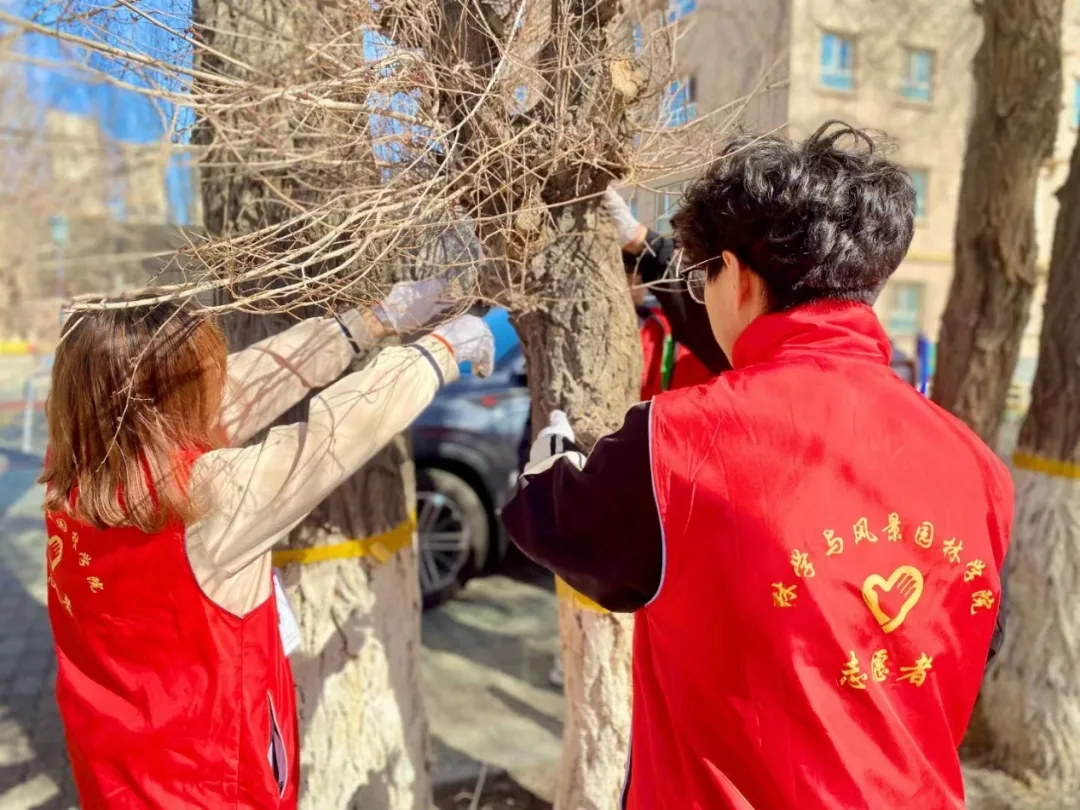 伴随着和煦的春风,新春的第一缕阳光洒满大地,万物复苏,生机勃勃。为深入贯彻落实劳动育人理念,落实我校“理论联系实际,教学结合生产”的教学方针,提高同学们的社会实践能力与志愿服务精神,为社区广大居民营造良好的生活环境,林学与风景园林学院团委、学生会青年志愿者协会于2024年4月3日,前往平顶山社区武警三支队家属院,开展了“春季修剪树木,提升绿化质量”志愿服务活动。