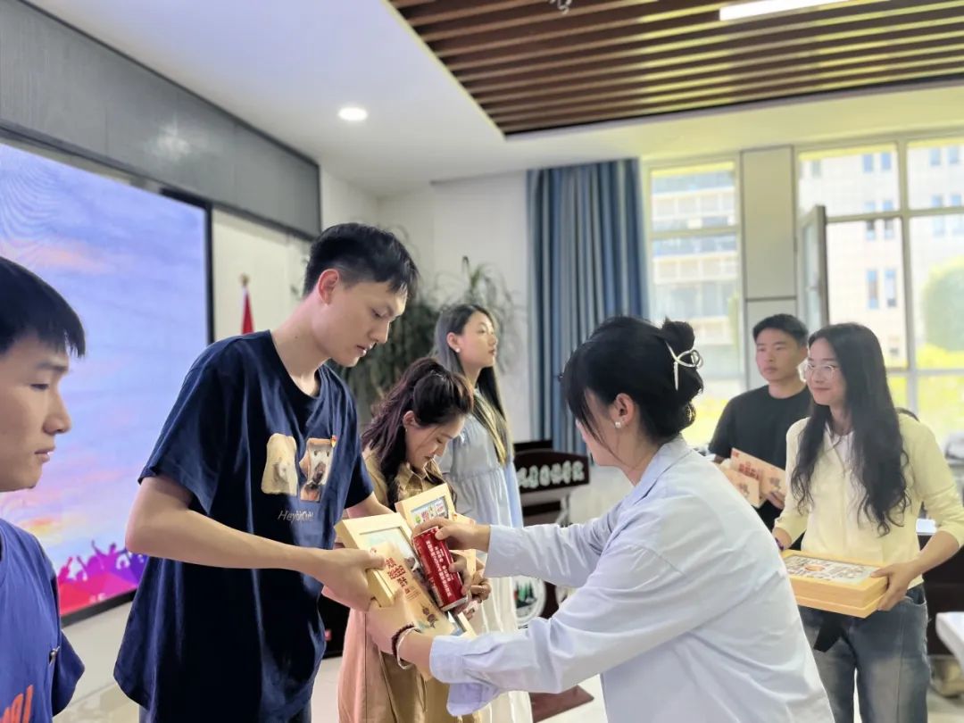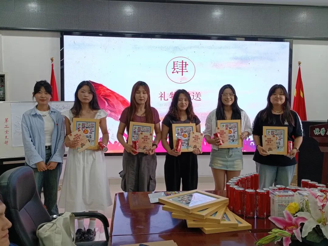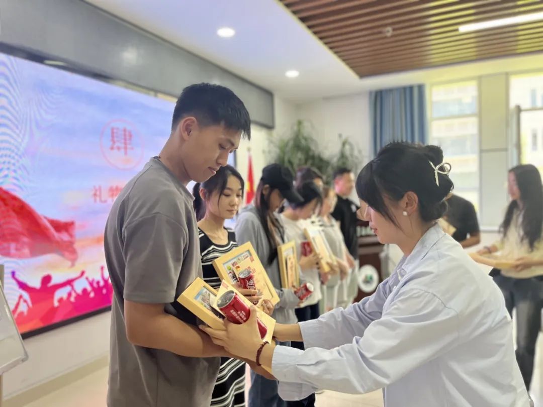 欢送会上支部书记杨俊卓老师为毕业生党员颁发政治生日贺卡并为同志们送上纪念相框相册、定制可乐、以及校徽。一张贺卡、一份礼物,是支部全体同志对毕业生党员的祝福,也承载着一份“不忘初心,牢记使命”的责任。