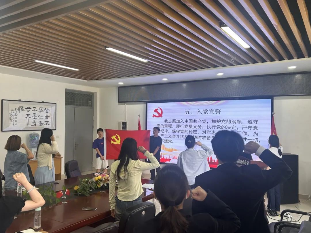 重温入党誓词,坚定理想信念。在支部书记的带领下,全体党员同志紧握右拳,面向党旗庄严宣誓,在铮铮誓言中重温入党初心,牢记责任担当。