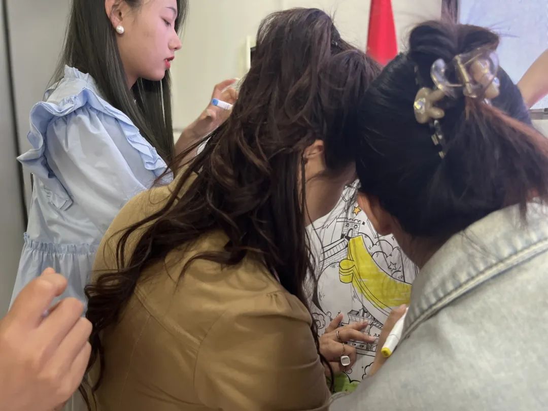 同时支部党员将鲜艳的色彩涂于掌心,印于画布,将大家手中的力量与信仰凝聚在一起,构成了一副绚丽多彩的图画,犹如大家五彩斑斓的未来,希望大家在新的征程上,前程似锦,未来可期。