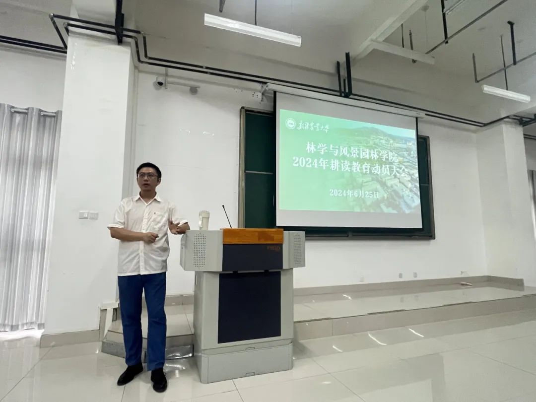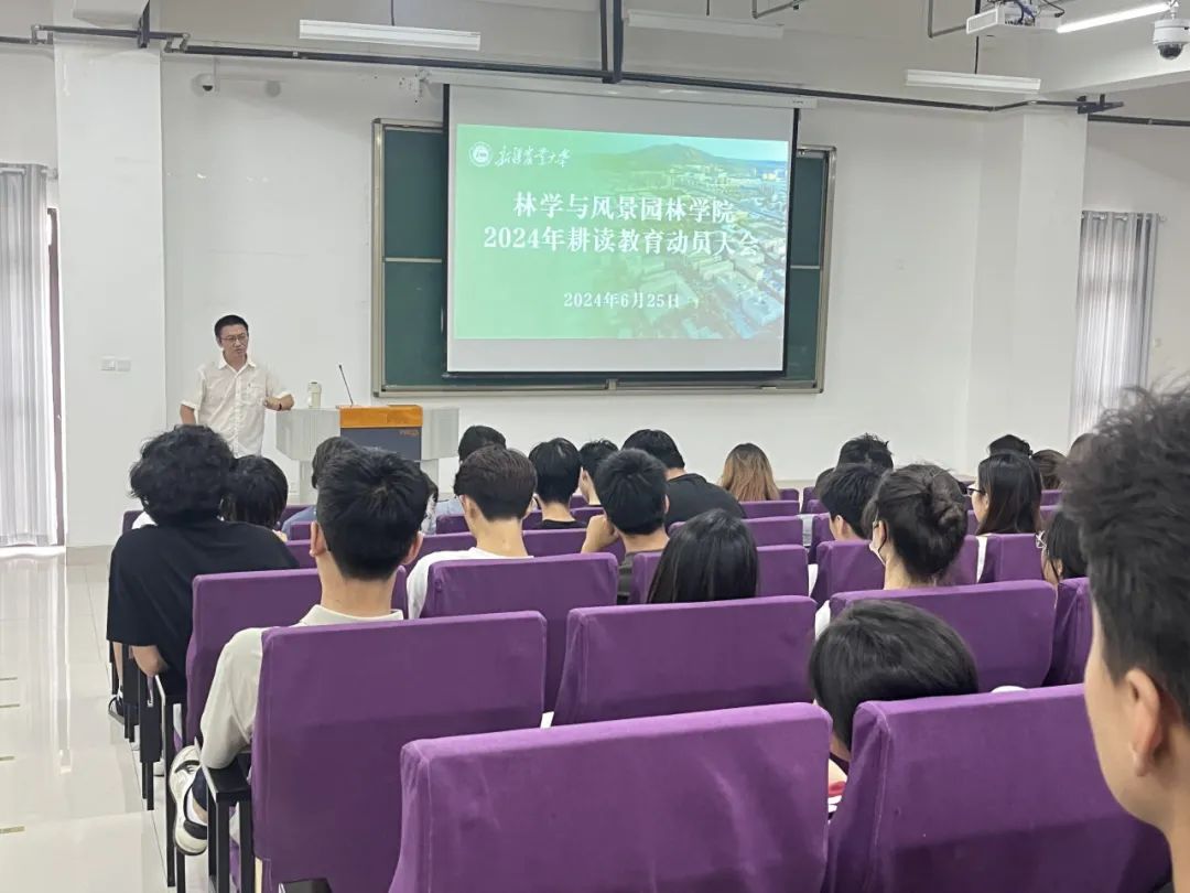 为全面贯彻党的教育方针,落实立德树人根本任务,以课程教学和耕读实践为关键,传承和弘扬中华民族耕读教育优良传统,紧密结合现代农业发展、生态文明建设和新农科人才培养,探索新时代耕读教育新内涵、新模式,全面增强学生强农兴农和为中华民族复兴而读书的责任感、使命感,培养高素质新型农林人才,6月25日,林学与风景园林学院2024年耕读教育实践课程动员大会于亚心校区举行。学院党委副书记、纪委书记苑炜,辅导员阿依沙吾列·达吾列提汗作动员宣讲,大一全体学生参加动员会。