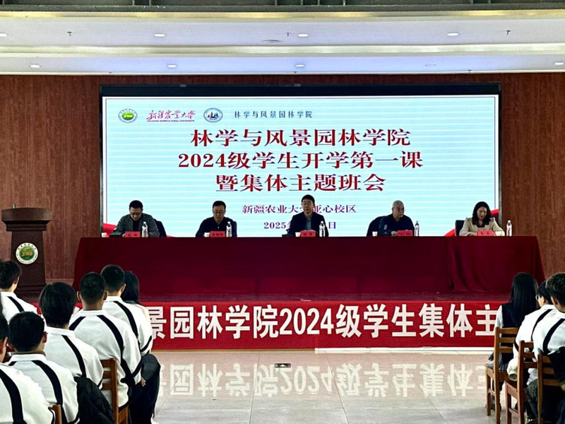 223日下午,林学与风景园林学院党委书记谢军、院长阿地力·沙塔尔、副院长王世伟、马荣一行带领2024级班主任赴亚心校区面向2024级全体学生开展“开学第一课”暨集体主题班会。本次活动旨在全面落实学校党委五届三次(扩大)会议精神及开学前相关工作部署要求,切实帮助同学们尽快适应新学期校园生活节奏,激发同学们的学习热情与未来发展向往,助力同学们全面发展,成长成才。活动由党委副书记、纪委书记苑炜主持。